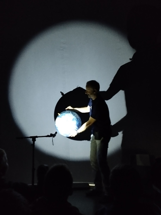 Am Freitag, dem 10.11.2023, staunten wir nicht schlecht, als wir zum sogenannten „Lernarium“ in die Turnhalle kamen. Das ist ein Planetarium in einem aufgeblasenen, kuppelförmigen Zelt. Ein Weltraumexperte erklärte uns alles über die Jahreszeiten, die Sonne und den Mond. Danach sahen wir einen Lehrfilm über die Milchstraße und Sternenbilder. Auch wenn es viel zu kurz war, war es sehr schön.
