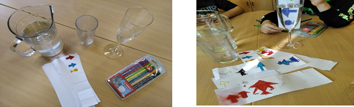 Am 23.05.2023 haben wir mit Schülern der Flex Klasse 1/2 die Lichtbrechung unter Wasser erforscht. Dies haben wir mit selbst gemalten Bildern auf Papier und mit Hilfe eines mit Wasser voll befüllten Glases erforscht. Die Kinder haben sich amüsierten und waren fasziniert vom Wechseleffekt der Bilder.