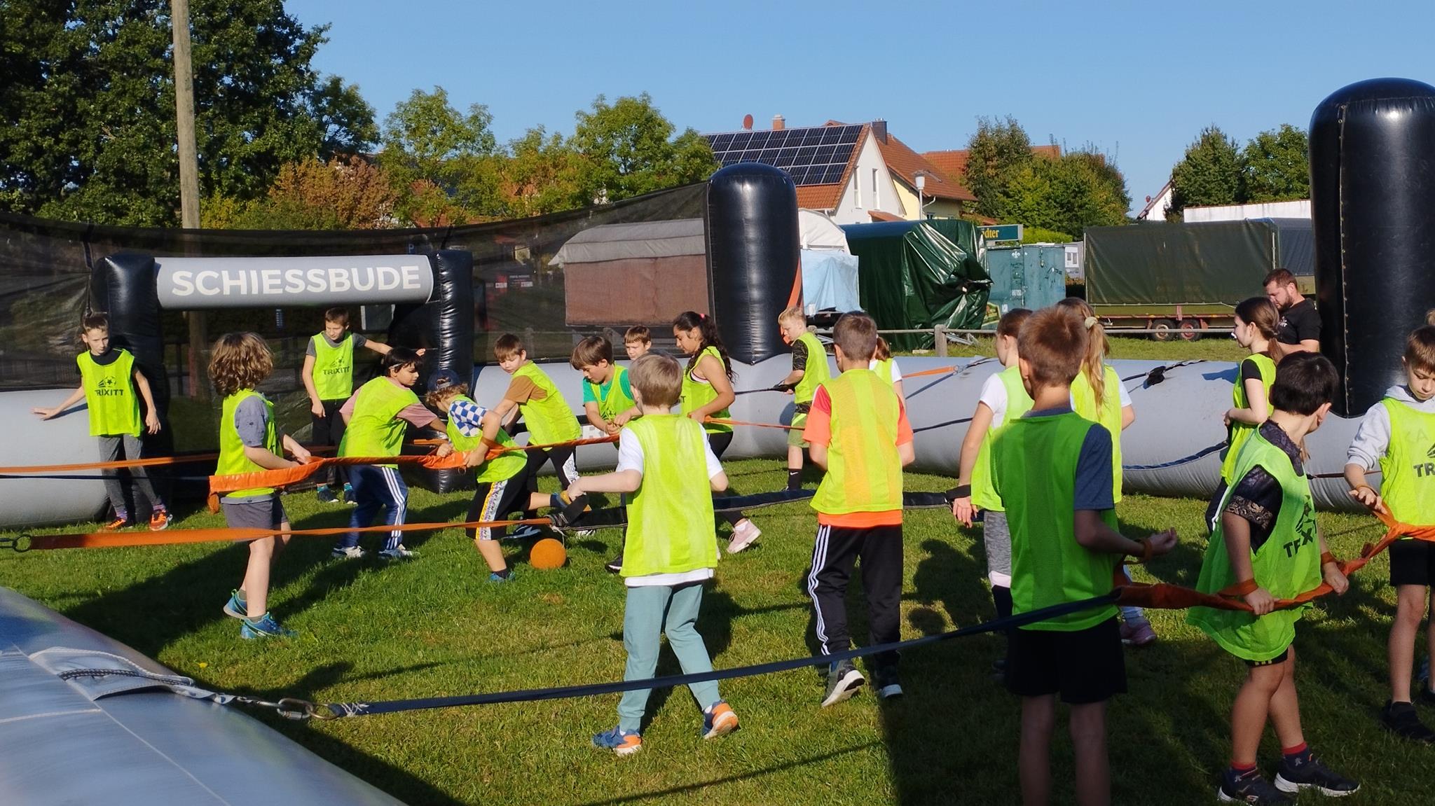 Am 28.9.2023 fand auf unserem Sportplatz in Wersau der Projekttag Trixitt statt. Bei schönstem Sonnenschein waren verschiedene Bewegungsstationen für uns Wersauer Grundschüler aufgebaut. Nach dem Aufwärmen ging es mit fetziger Musik in zwei Gruppen (Flex 1/2 und Kombi 3/ 4) zu den Angeboten. Am meisten hat uns der aufblasbare Bewegungsparcours gefallen, aber auch der „Menschentischkicker“, das Zweifelderballspiel, das gemeinsame Tanzen und das Tonnenwerfen machte viel Spaß. Zur Stärkung hat uns der Förderverein Wasser und Obst vorbeigebracht. Dankeschön! Am Ende haben wir alle zusammen jede Menge Bewegungspunkte gesammelt und uns dabei auch noch in Fairness geübt.